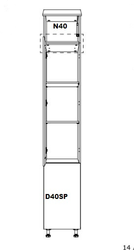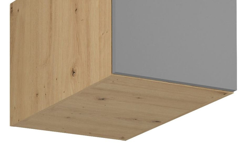 Horní skříňka N40 kuchyně LANGEN - jedno dvířková, výklopná. Skříňka slouží jako nástavba na úzkou potravinovou skříň D40SP. Korpus lamino v dekoru Dub Artisan, dvířka MDF v dekoru Beige.