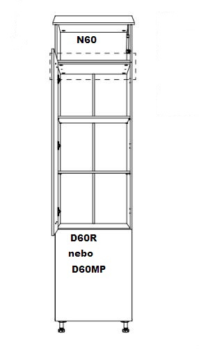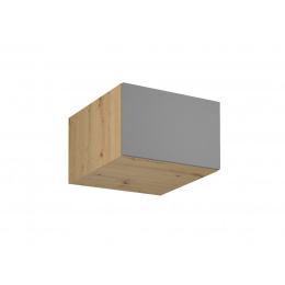 Horní skříňka N60 kuchyně LANGEN - jedno dvířková, výklopná. Skříňka slouží jako nástavba na potravinovou skříň D60R nebo vestavnou skříň pro troubu D60PM. Korpus lamino v dekoru Dub Artisan, dvířka MDF v dekoru Beige.