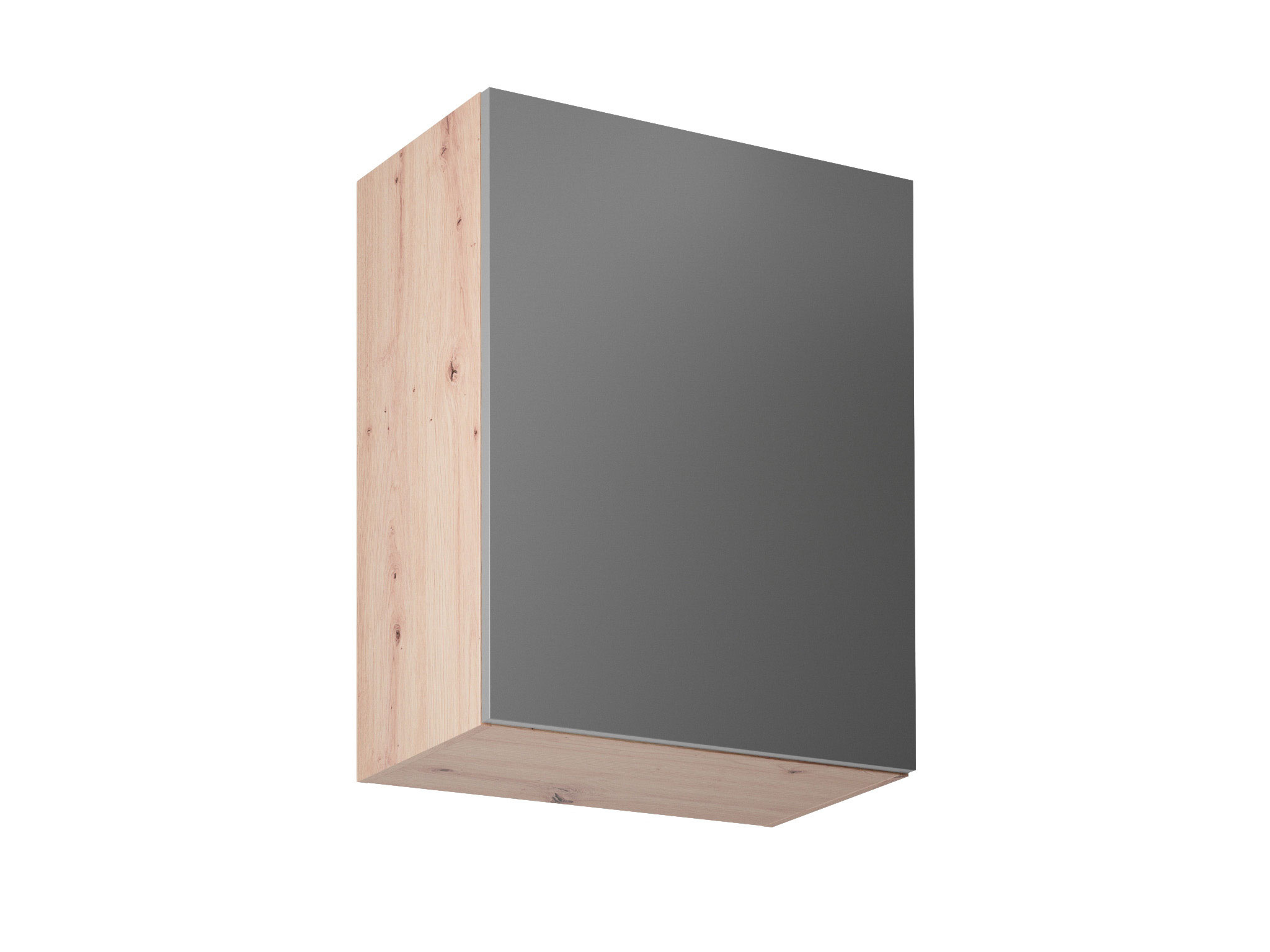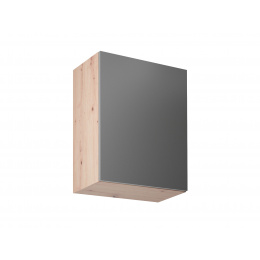 Horní skříňka G60P/L kuchyně LANGEN - jedno dvířková s jednou policí. Dvířka jsou stranově zaměnitelná, můžete je namontovat s pravým nebo levým otevíráním. Korpus lamino v dekoru Dub Artisan, dvířka MDF v dekoru Grey.