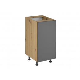 Spodní skříňka D40P/L kuchyně LANGEN - jedno dvířková s jednou policí. Dvířka jsou stranově zaměnitelná, můžete je namontovat s pravým nebo levým otevíráním. Korpus lamino v dekoru Dub Artisan, dvířka MDF v dekoru Grey. Výška spodní skříňky je bez pracovní desky.