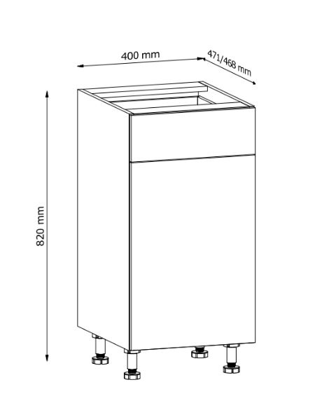 Spodní skříňky jsou dodávány bez pracovní desky a soklu, které se objednávají samostatně.