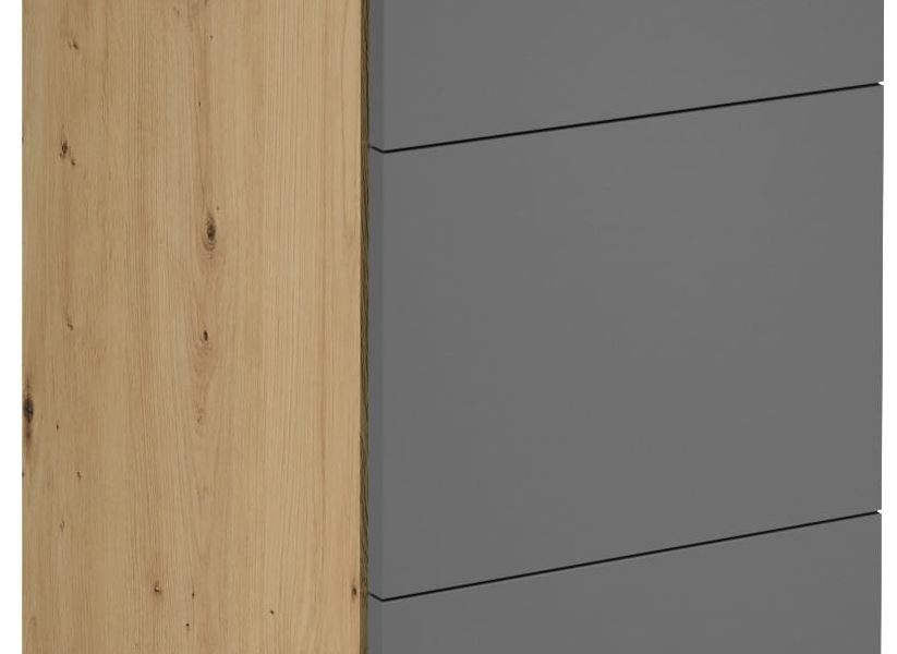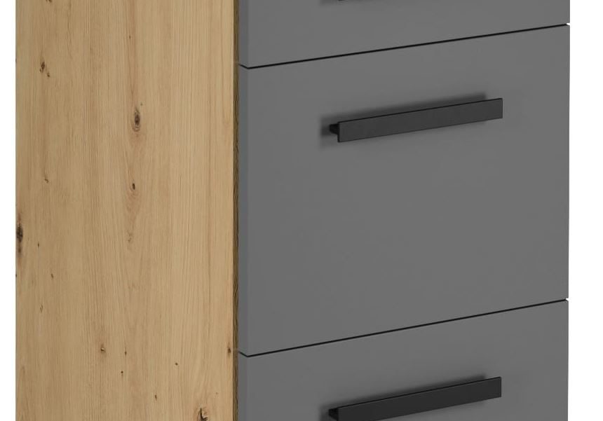Spodní skříňka D40S3 kuchyně LANGEN - tří šuplíková skříňka. Korpus lamino v dekoru Dub Artisan, šuplíky MDF v dekoru Grey. Výška spodní skříňky je bez pracovní desky.
