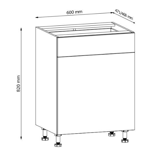 Spodní skříňky jsou dodávány bez pracovní desky a soklu, které se objednávají samostatně.