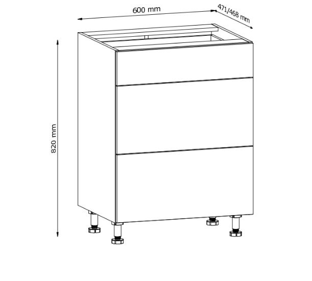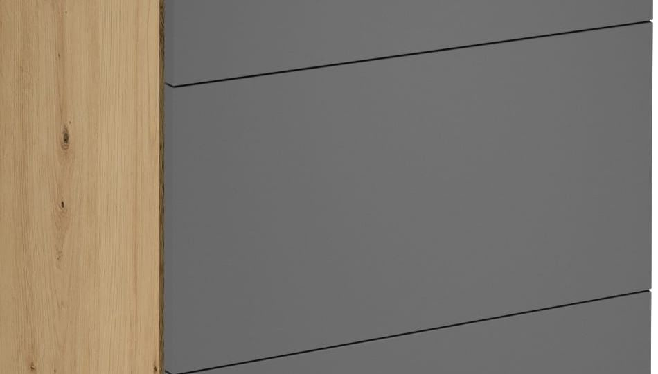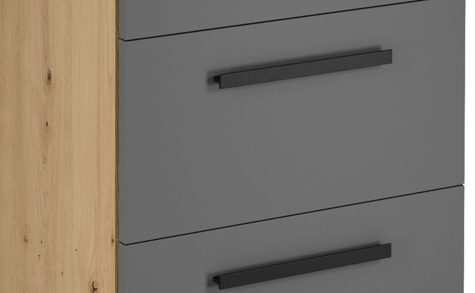 Spodní skříňka D60S3 kuchyně LANGEN - se třemi šuplíky. Korpus lamino v dekoru Dub Artisan, dvířka MDF v dekoru Grey. Výška spodní skříňky je bez pracovní desky.