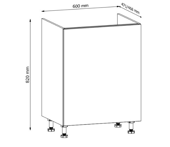 Spodní skříňky jsou dodávány bez pracovní desky a soklu, které se objednávají samostatně.