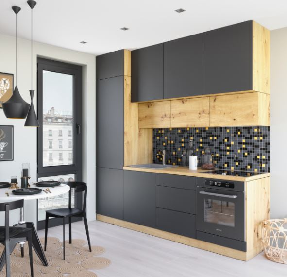 Moderní kuchyňská linky LANGEN pro Vás, kteří si ceníte kvalitního designu a vysoké funkčnosti. Kuchyňské skříňky mají korpus vyroben z kvalitního lamina v dekoru Dub Artisan. Čelní plochy jsou z MDF a můžete si vybrat ze tří barevných provedení Dub Artisan, Grey nebo Beige. Kuchyňské skříňky LANGEN mají šuplíky na kovových pojezdech. Dvířka mohou mít klasický kovový úchyt nebo push to open systém - bezúchytové otevírání. Horní výklopné skříňky mají plynové písty. Kování dvířek jsou s tichým dovíráním a šuplíky s plnovýsuvem bez tichého dovírání. Nožky spodních skříněk jsou výškově stavitelné v rozmezí 10 - 12,5 cm.