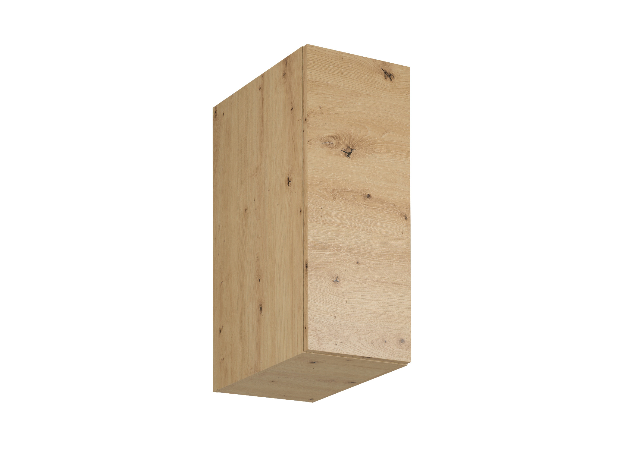 Horní skříňka G30G P/L kuchyně LANGEN - jedno dvířková s jednou policí. Dvířka jsou stranově zaměnitelná, můžete je namontovat s pravým nebo levým otevíráním. Korpus lamino v dekoru Dub Artisan, dvířka MDF v dekoru Dub Artisan.