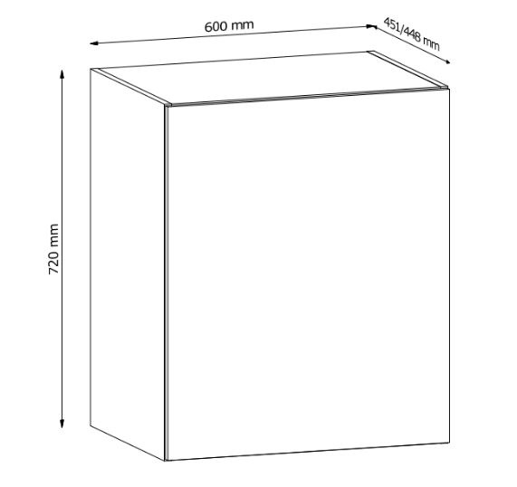 Horní skříňka G60G P/L kuchyně LANGEN - jedno dvířková s jednou policí. Dvířka jsou stranově zaměnitelná, můžete je namontovat s pravým nebo levým otevíráním. Korpus lamino v dekoru Dub Artisan, dvířka MDF v dekoru Dub Artisan.