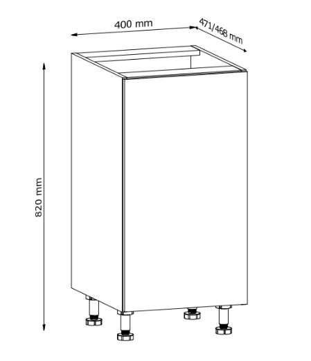 Spodní skříňka D40P/L kuchyně LANGEN - jedno dvířková s jednou policí. Dvířka jsou stranově zaměnitelná, můžete je namontovat s pravým nebo levým otevíráním. Korpus lamino v dekoru Dub Artisan, dvířka MDF v dekoru Dub Artisan. Výška spodní skříňky je bez pracovní desky.