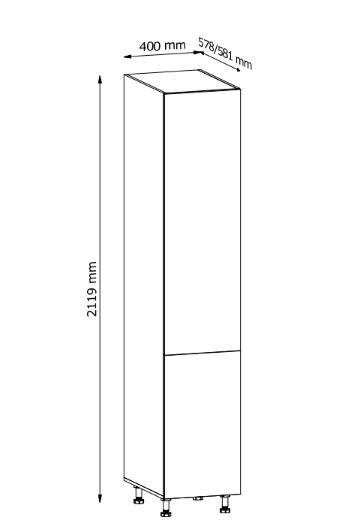Spodní skříňka D40SP P/L kuchyně LANGEN - potravinová, dvou dvířková s policemi a dvířky nad sebou. Dvířka jsou stranově zaměnitelná, můžete je namontovat s pravým nebo levým otevíráním. Nad tuto skříňku můžete ještě využít nástavbu N40. Korpus lamino v dekoru Dub Artisan, dvířka MDF v dekoru Dub Artisan. Výška spodní skříňky je bez pracovní desky.