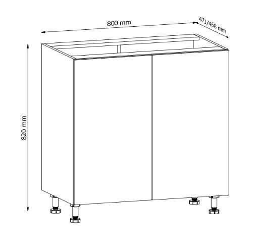 Spodní skříňky jsou dodávány bez pracovní desky a soklu, které se objednávají samostatně.