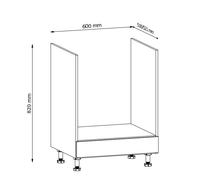 Spodní skříňka D60ZK kuchyně LANGEN - skříňka pro vestavbu sporáku, v dolní části je odkládací šuplík. Korpus lamino v dekoru Dub Artisan, dvířka MDF v dekoru Dub Artisan. Výška spodní skříňky je bez pracovní desky.
