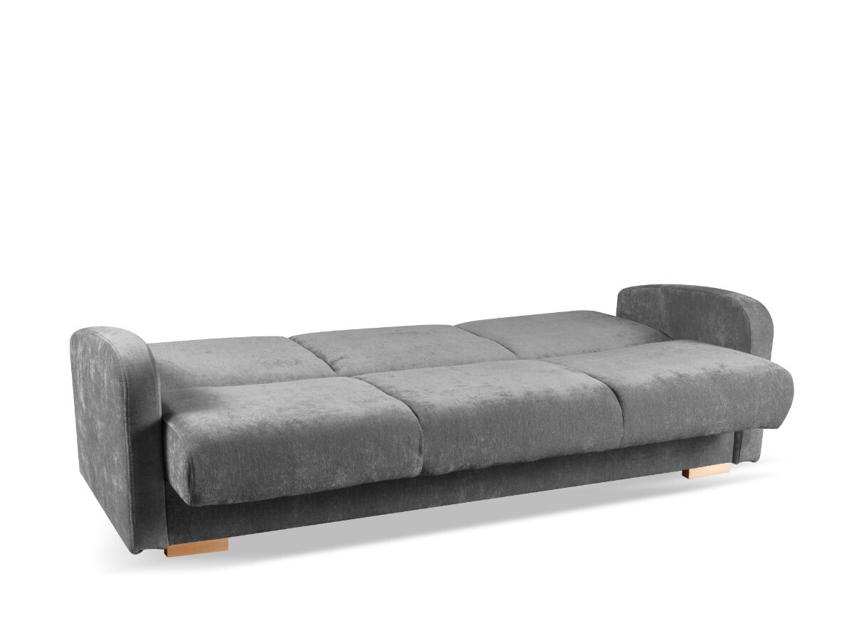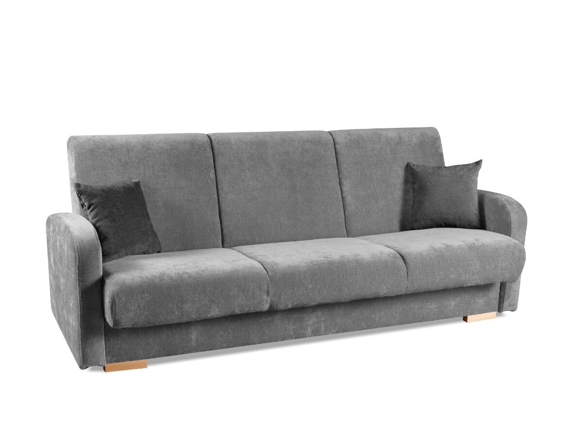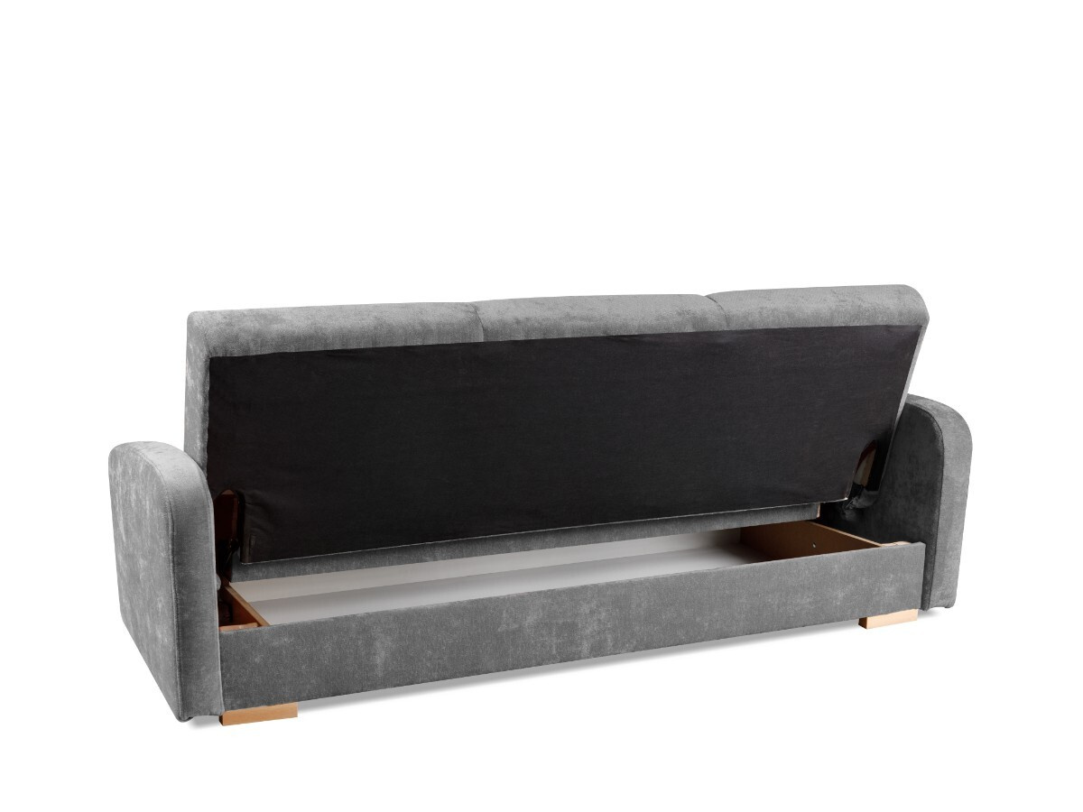 Klasická sedací souprava, která se skládá z rozkládacího trojsedu. Jednoduchým rozkladem vznikne lůžko vhodné k příležitostnému spaní. Trojsed rovněž disponuje úložným prostorem. Součástí sedací soupravy jsou dvě křesla s dřevěnými područkami. Sedací souprava má pružinové jádro v kombinaci s kvalitní PUR pěnou. Sestava je očalouněna látkou v šedé barvě - Matana 03/tmavě šedá - Matana 05. Područky jsou v odstínu přírodní, olše a ořech.