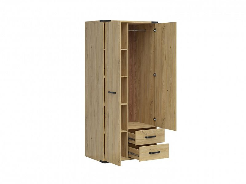 Šatní skříň ze systému LARA - dvoudveřová (police a šatní tyč), 2 zásuvky