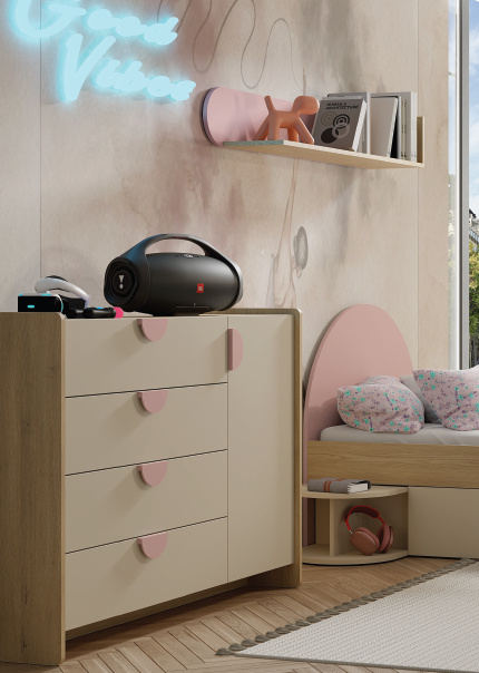 Systémový nábytek LEXI - moderní nábytkový sektor pro Vaše dítě. Nábytek navržený v souladu s aktuálními trendy. Kombinace moderních barev a funkčnosti každého kusu nábytku poskytne pohodlí a ideální prostor pro učení. Dětský pokoj LEXI je v kombinací klasických barev dub cremona / makadamia / pudrově růžová což podtrhuje charakter nábytku. Sektorový nábytek LEXI tvoří 17 prvků, které můžete libovolně sestavovat podle vlastních představ. Díky čemuž si můžete sestavit pokoj podle potřeb Vašeho dítěte. Nábytek LEXI je vyroben z kvalitního lamina, hrany jsou začištěny ABS hranou, pojezdy jsou kovové.