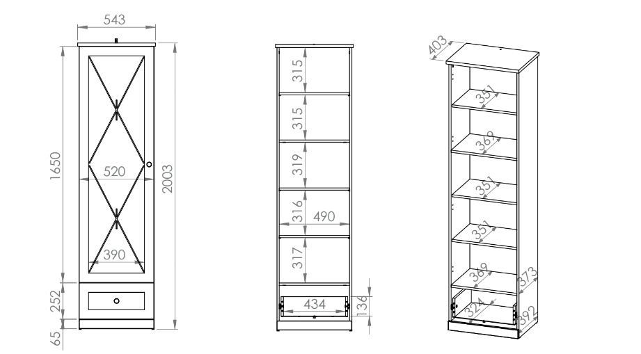 Policová skříň LILLE 03 - jednodveřová s policemi a objemným šuplíkem dole