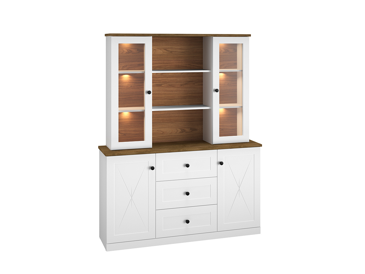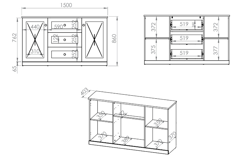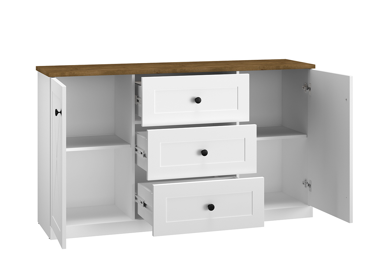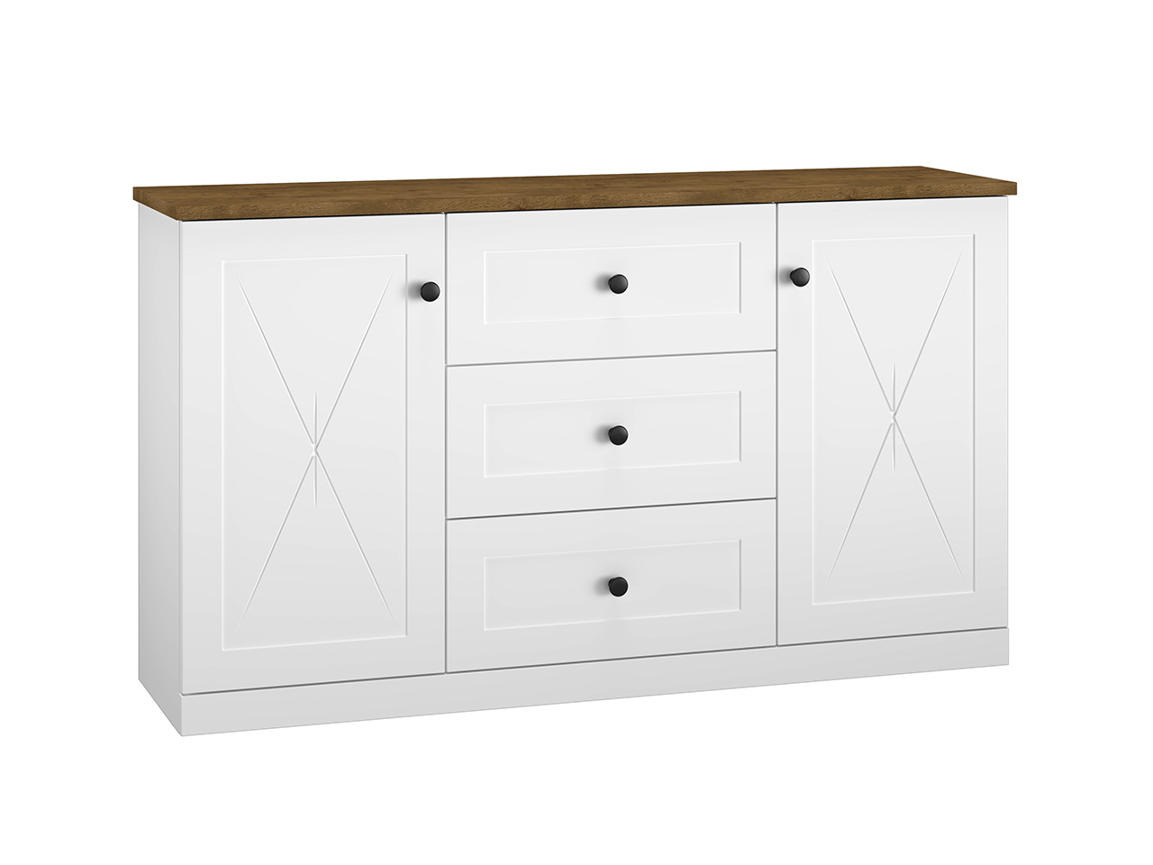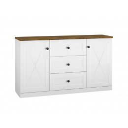 Komoda LILLE 06 - s plnými dvířky po stranách a šuplíky uprostřed, komodu můžete použít pod nástavbou LILLE 07 a vytvořit tak stylový příborník