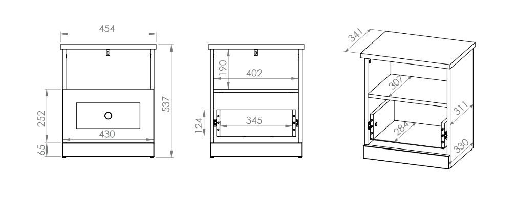 Noční stolek LILLE 12 - s otevřenou odkládací nikou a šuplíkem