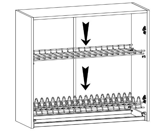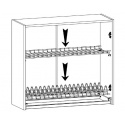 Horní skříňka kuchyně LINEA G80C - skříňka má místo klasické police a dna drátěný držák talířků s odkapávací miskou.