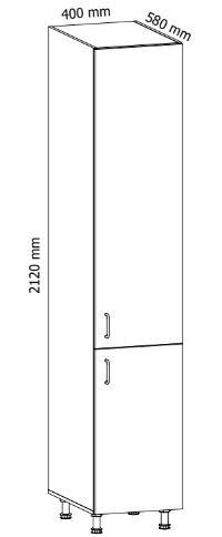 Spodní skříňka kuchyně LINEA D40SP - potravinová skříňka s policemi, dvou dvířka nad sebou, volba pravého nebo levého otevírání dvířek.