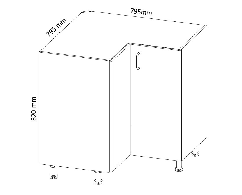 Spodní skříňka kuchyně LINEA D90N - rohová skříňka s jednou policí.