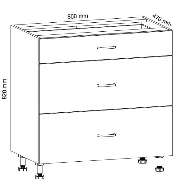 Spodní skříňka kuchyně LINEA D80S3 - skříňka se třemi šuplíky