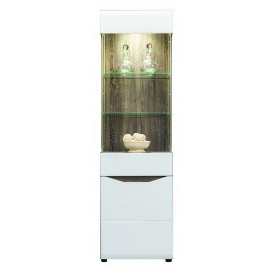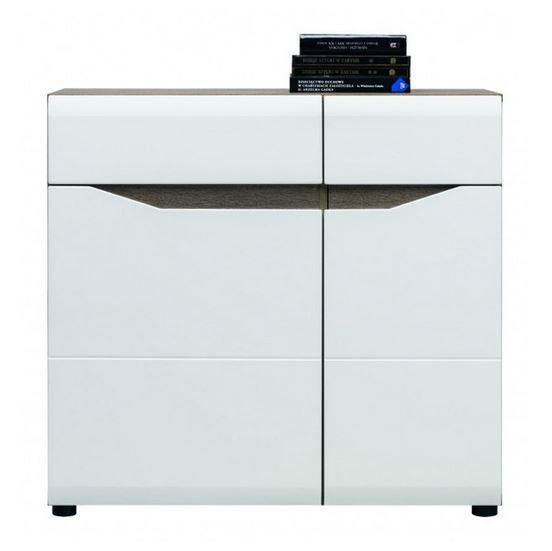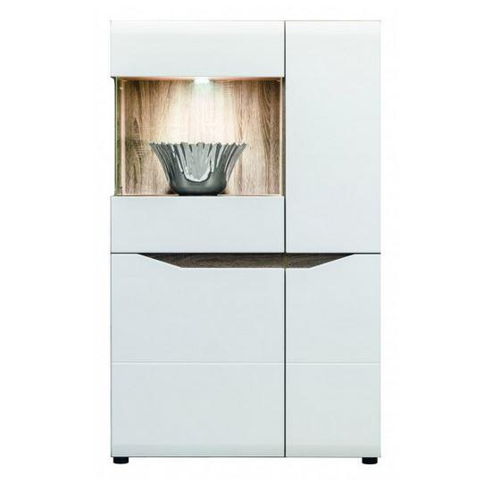 LIONEL je moderní elegantní systémový nábytek v atraktivním barevné kombinaci dub sonoma truflova / bílý lesk. Tento nábytek Vás zaujme, na první pohled, svými hladkými tvary a originálně řešenými úchyty dvířek a šuplíků, které nenarušují jejich plynulou línii. Sektorový nábytek LIONEL můžete využít při zařizování obývacího pokoje, jídelny, ložnice i studentského pokoje. Korpusy skříněk jsou vyrobeny z kvalitní dřevotřísky v barvě dub sonoma truflový. Dvířka jsou z foliované MDF v bílé barvě ve vysokém lesku. Komfort při používání dvířek a šuplíků zajišťují tlumiče pro tiché dovírání.