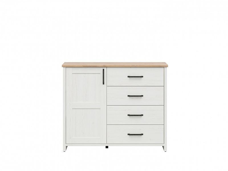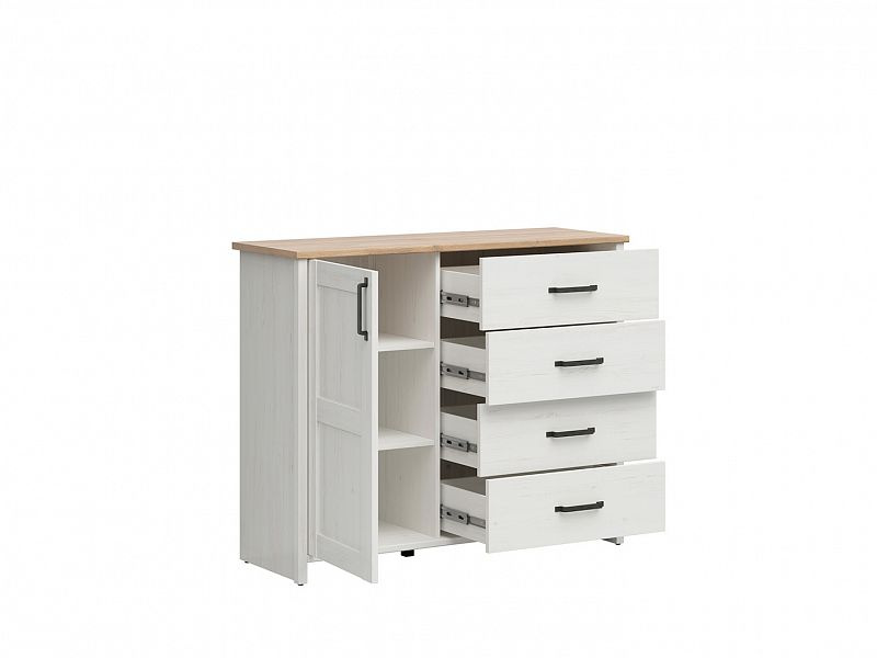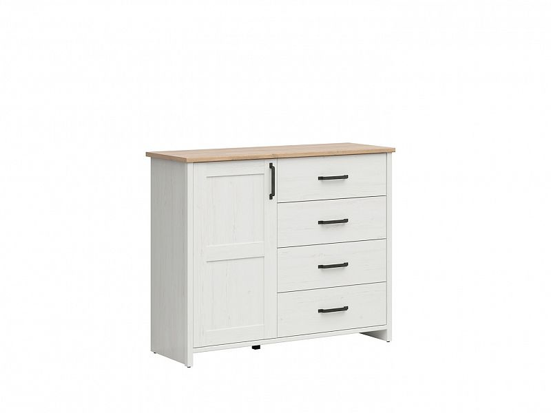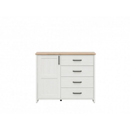 Komoda LOKSA - plná dvířka, 4 prostorné šuplíky
