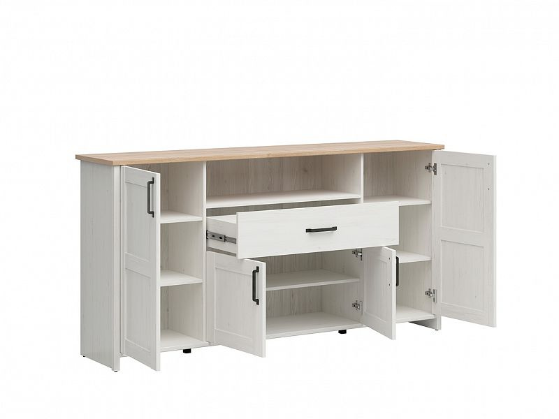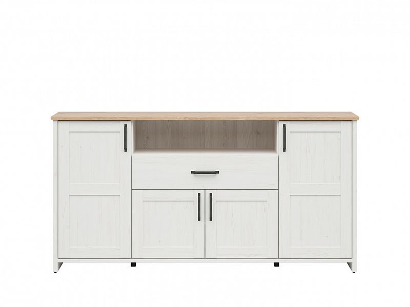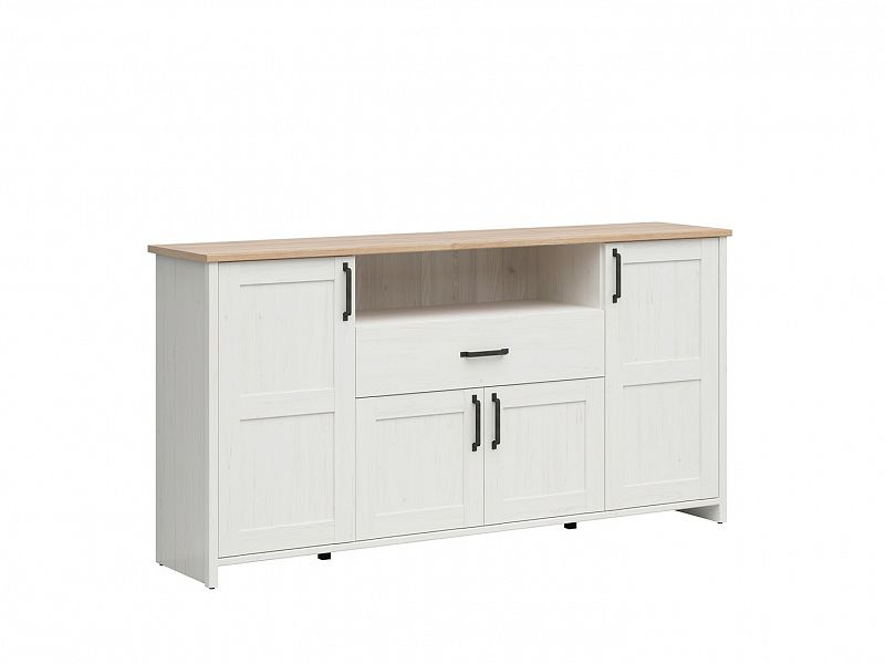 Komoda LOKSA - 4 plná dvířka, prostorný šuplík, otevřená nika