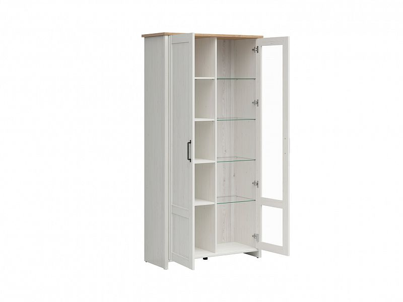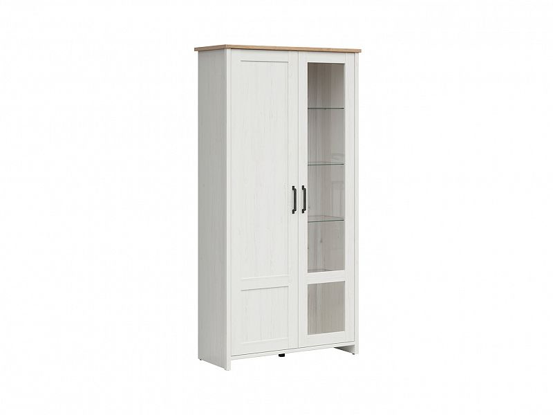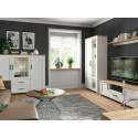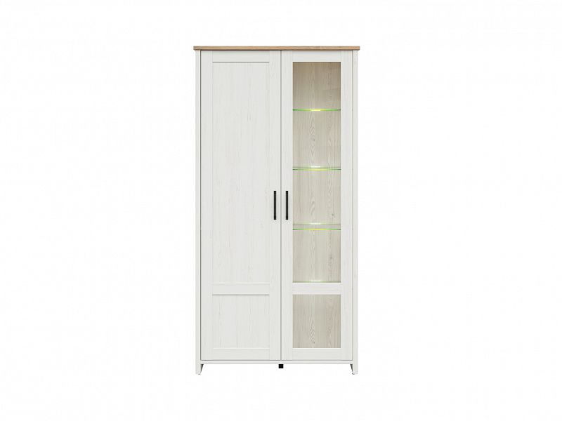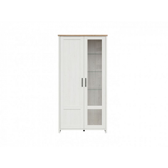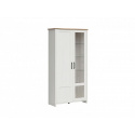 Vitrína LOKSA - dvoudveřová, rozdělená na plnou a prosklenou část, včetně LED osvětlení v prosklené části