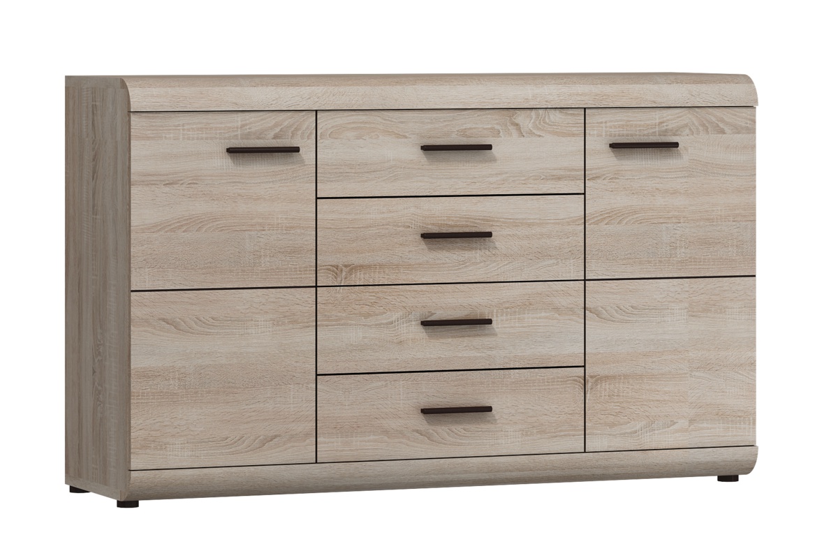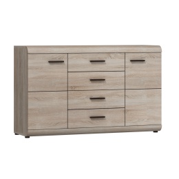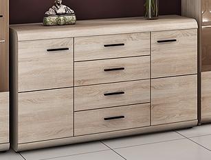 Komoda 140 - kombinovaná, plná dvířka po stranách + police, šuplíky