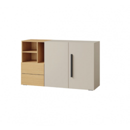Komoda 7 ze systému LORIN - kombinovaná s dvířky, šuplíky a otevřenou policovou nikou