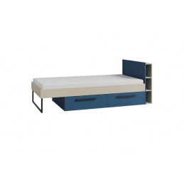 Postel 11 ze systému LORIN - s úložnými šuplíky pod postelí, s čelem s poličkami bez matrace, kterou si můžete vybrat v naší nabídce