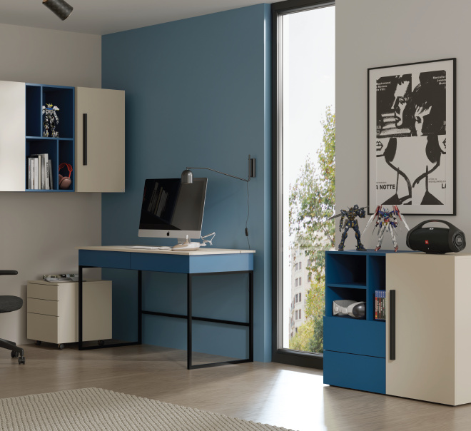 Systémový nábytek LORIN je elegantní a funkční nábytek do studentského nebo dětského pokoje. Korpus a čelní plochy nábytku je vyrobeny z kvalitního lamina v barevném provedení kašmír / mořská modř. Jedinečný vzhled a vysoká praktičnost obývacího nábytku LORIN se vyznačují jedinečným stylem a originalitou. Atraktivní barevná kombinace kašmír / mořská modř mu dodává moderní a elegantní vzhled. Tento sektor do studentských a dětských pokojů je perfektním řešením pro Vás, kdo hledáte vizuálně atraktivní prvky interiérového designu. Všestranný nábytek se perfektně hodí do moderního interiéru. Jeho minimalistické, hladké linie nezahlcuje prostor a umožňují všestranné uspořádáni obytného prostoru. Se systémovým nábytkem LORIN můžete svým dětem vytvořit elegantní a hřejivý interiér.