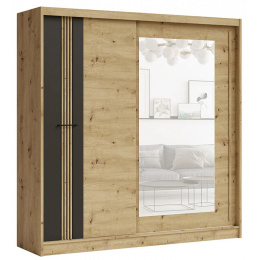 Šatní skříň ML - 200 ze systému LOTA - kombinovaná s policeni šatní tyčí, s posuvnými dveřmi a zrcadlem