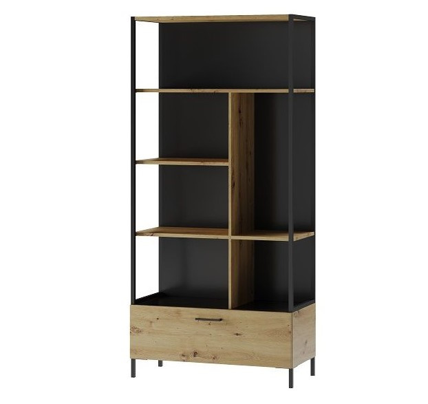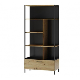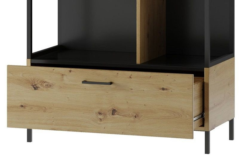Elegantní spojení kovu a dřevěného dekoru, tím se vyznačuje industriální styl systémového nábytku LUCKY. Tímto originálním nábytkem skvěle zařídíte moderní obývací pokoj. Nosná kostra sektoru LUCKY je vyrobená z kovu v černé barvě. Korpus, dvířka a šuplíky jsou z kvalitního lamina v dekoru dub artisan v kombinaci s černou matnou. Do vitrín lze dokoupit LED osvětlení.