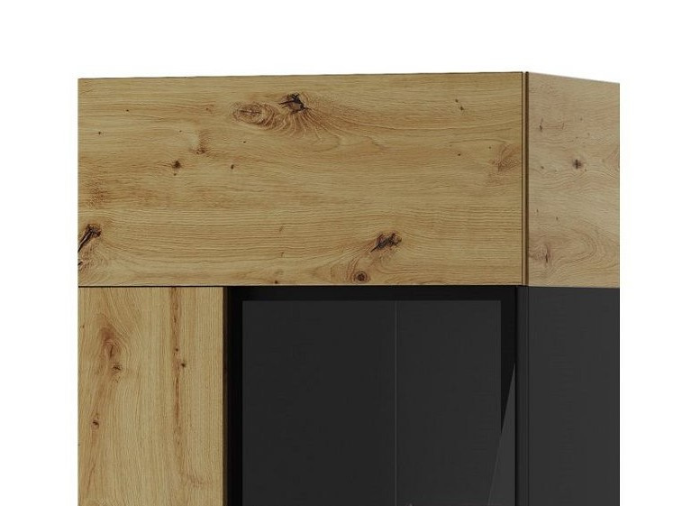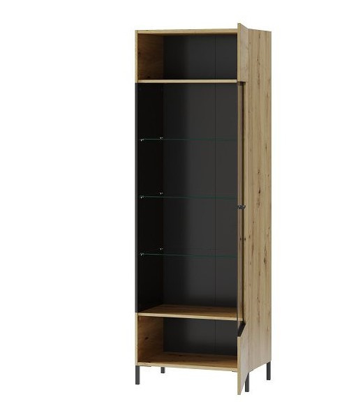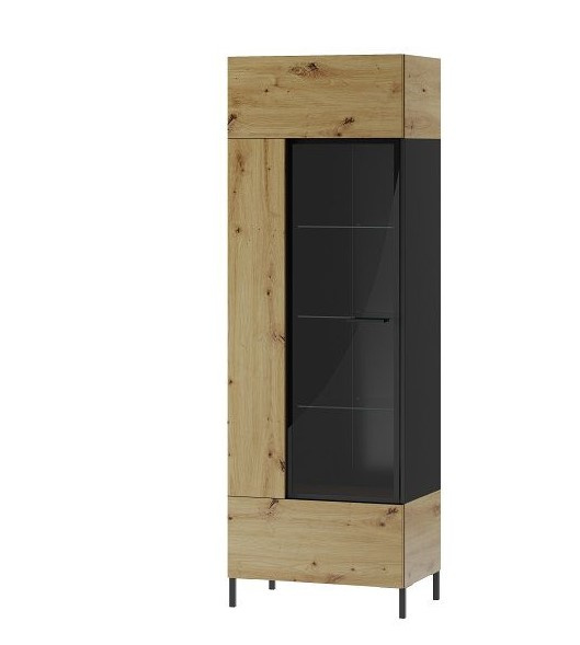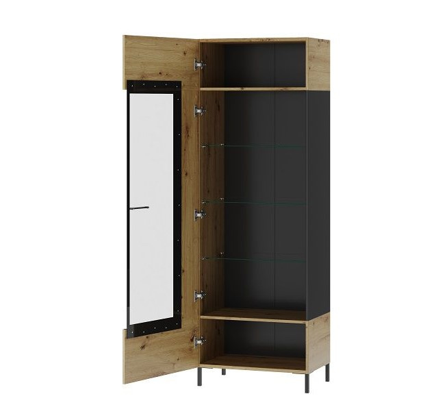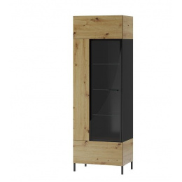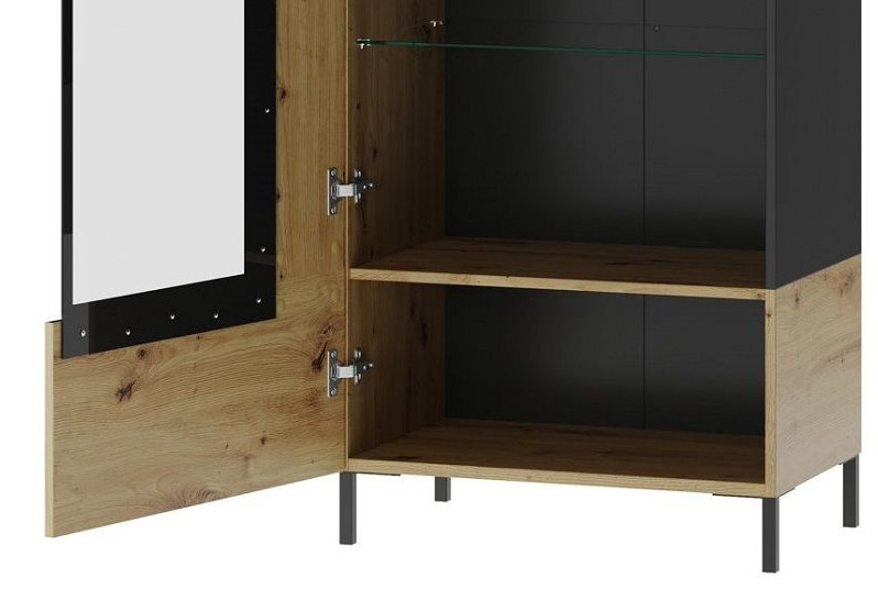 Elegantní spojení kovu a dřevěného dekoru, tím se vyznačuje industriální styl systémového nábytku LUCKY. Tímto originálním nábytkem skvěle zařídíte moderní obývací pokoj. Nosná kostra sektoru LUCKY je vyrobená z kovu v černé barvě. Korpus, dvířka a šuplíky jsou z kvalitního lamina v dekoru dub artisan v kombinaci s černou matnou. Do vitrín lze dokoupit LED osvětlení.