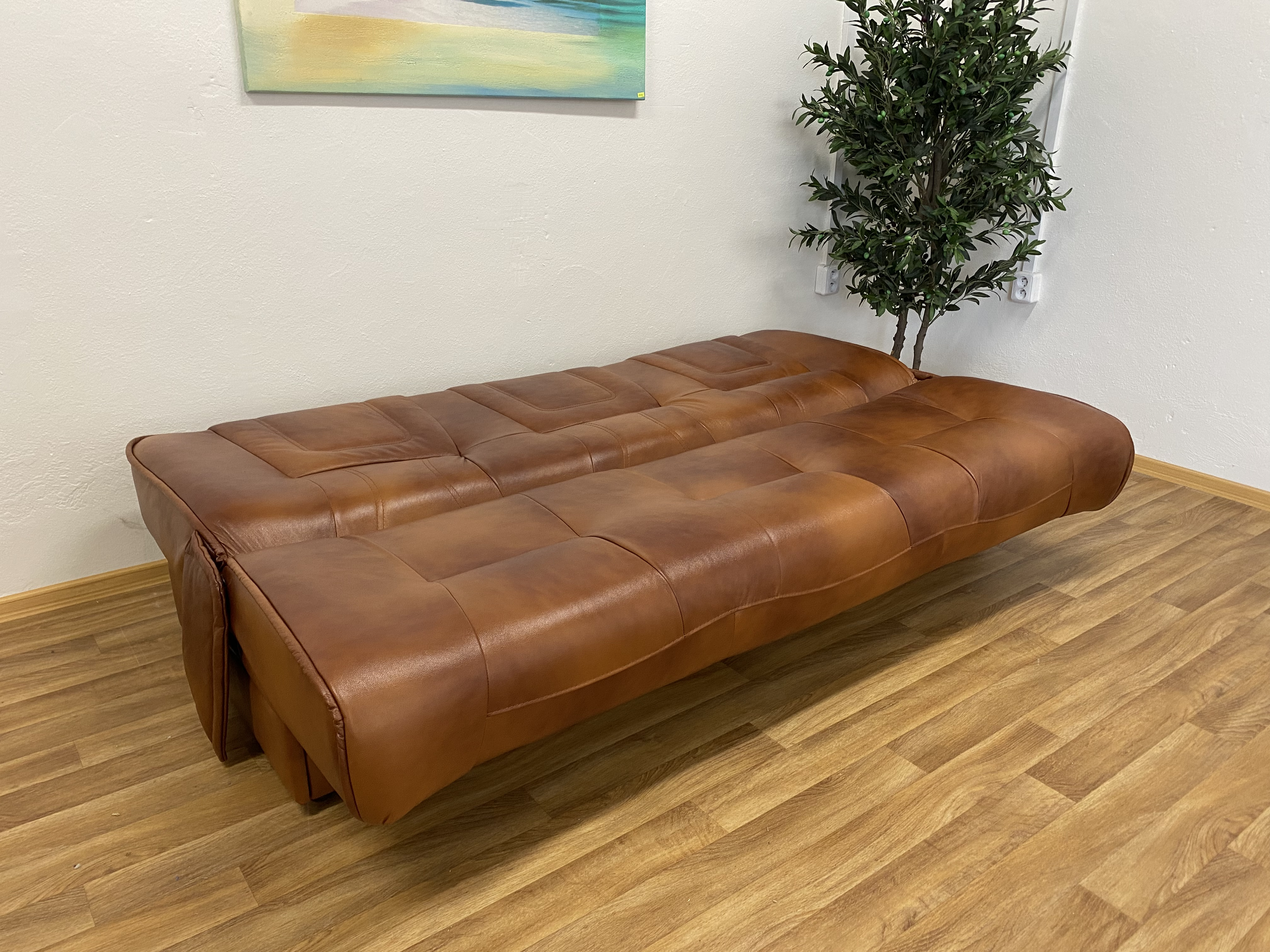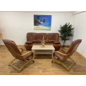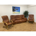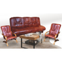 Stylová sedací souprava FINKA - pohovka a dvě křesla. Sedačka je vyrobená v pravé kůži v hnědém tónu S42 / D3 rustik. Pohovka i křesla jdou dekoračně prošité, což dodává na luxusu a pevnosti celému nábytku. Jistě oceníte snadno přístupný úložný prostor. Zároveň je možné pohovku rozložit a využít k příležitostnému přespání. Rozklad je snadný díky clic clac systému. Po rozložení vznikne spací plocha o rozměrech 120 x 200 cm. Výplň sedáku tvoří vlnitá pružina a PUR pěna. Výška sedáku 42 cm, hloubka sedáku 53 cm.