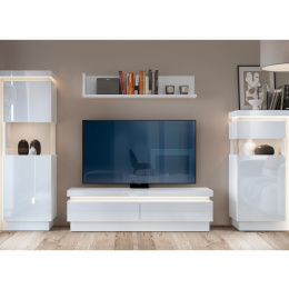 Moderní systémový nábytek LYON vnese do vašeho interiéru šarm a nadčasovou eleganci. Kolekce byla navržena v minimalistickém, moderním provedení, které nabízí funkčnost a praktičnost. LED osvětlení v teplých tónech je strategicky umístěno v horním okraji a po stranách nábytku. Díky tomu je vytvořena příjemná atmosféra a zvýrazněna linie nábytku. Při výrobě bylo použito kvalitní lamino, které je odolné proti poškrábání, v elegantním bílém provedení. Dvířka a šuplíky mají tiché dovírání. Sektorový nábytek LYON nabízí spoustu jednotlivých prvků ze kterých můžete sestavit nový obývací pokoj, ložnici, studentský pokoj nebo jídelnu. Díky kombinaci elegance, kvality a praktičnosti můžete snadno vytvořit ucelený a harmonický interiér.