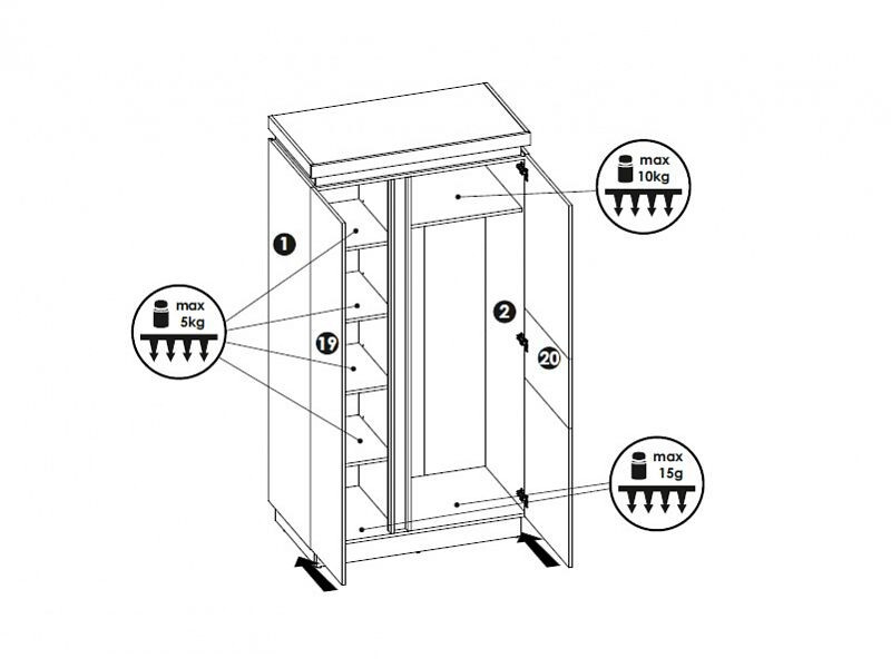 Šatní skříň ze systému LYON - dvoudveřová s policemi a šatní tyčí