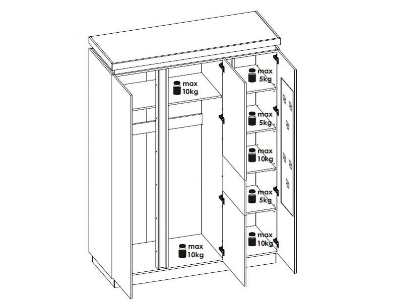 Šatní skříň ze systému LYON - třídveřová s policemi a šatní tyčí