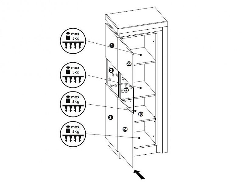 Rozměr: š. 60 cm / v. 164 cm / hl. 42 cm
