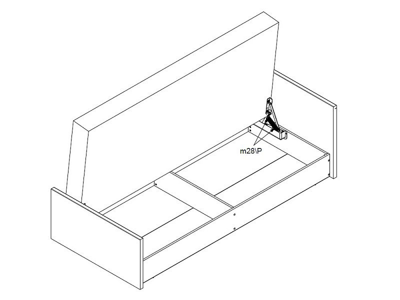 Postel LOZ/90 systém Malcolm - s úložným prostorem. Do této postele se hodí pouze matrace na dřevěném rámu ( nutno dokoupit ), která není součástí postele. Úložný prostor je přístupný z boku, po zvednutí matrace pomocí mechanismu s pružinou, který je připevněn k rámu matrace.