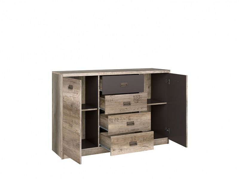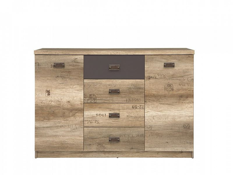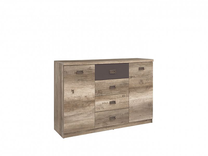 Kombinovaná KOMODA KOM2D4S, se čtyřmi šuplíky a dvěma plnými dvířky.