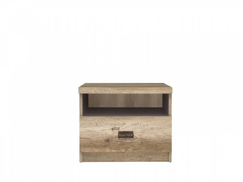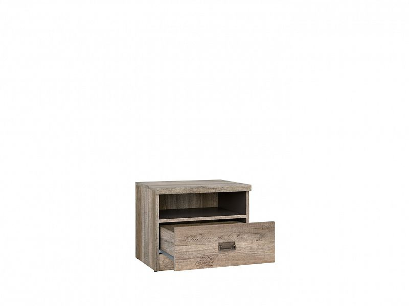 Noční stolek KOM1S se skládá z 1 zásuvky a 1 otevřené poličky.