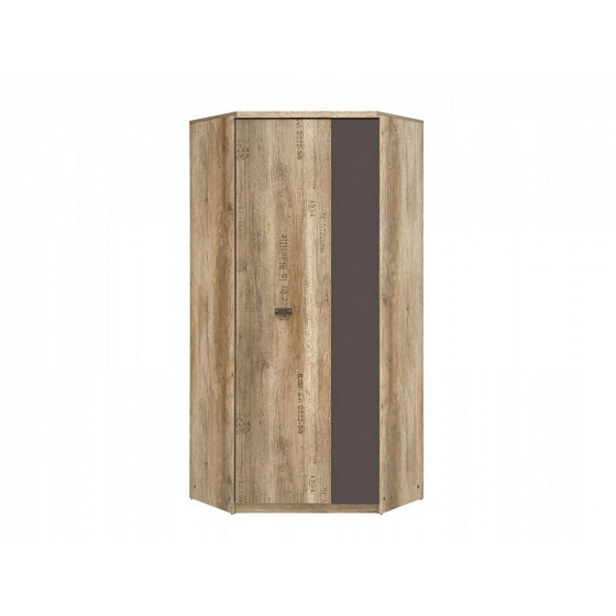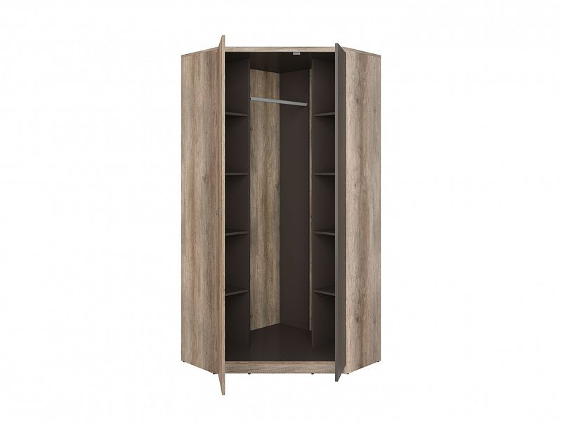 Rohová skříň SZFN2D - uvnitř skříně je tyč na ramínka a po stranách je umístěno 8 polic.