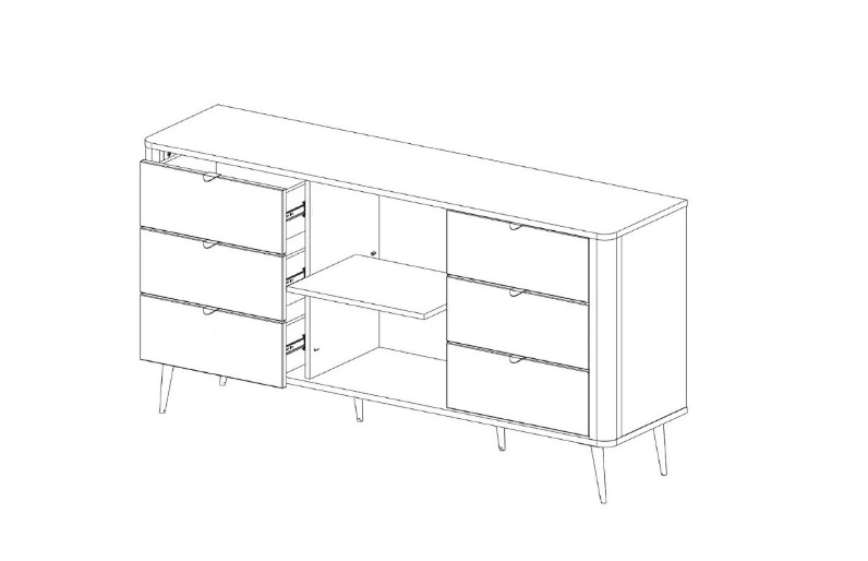 Komoda 9 ze systému MARLY - kombinovaná komoda s šuplíky po stranách a plnými dvířky uprostřed, jednou polici