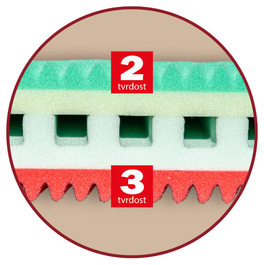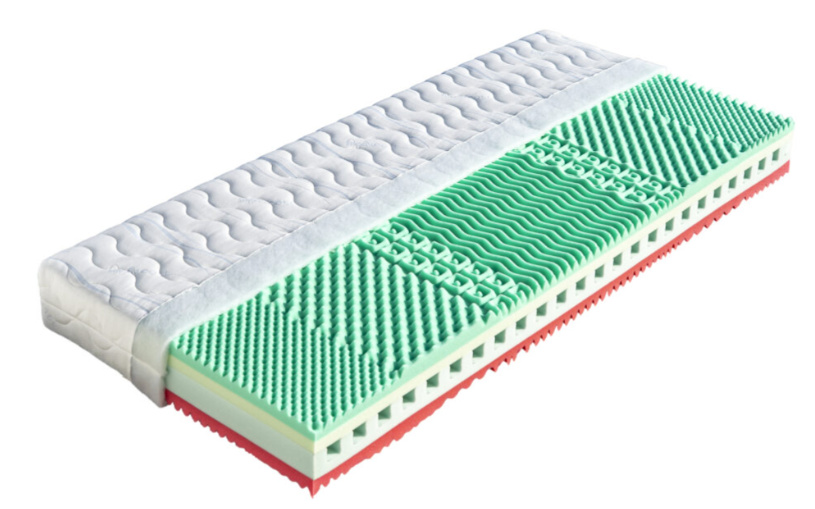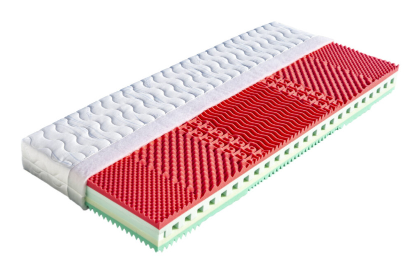 Matrace s jádrem s unikátně provzdušněným řezem. Tento zákazníky časem prověřený profil je složen z tvrzené pěny MediFoam s vysokou gramáží (40 kg/m³). V matraci se udržuje tzv. suché klima, nevhodné pro mikroorganismy. Speciální červená pěna (32 kg/m³) s antibakteriální úpravou Sanitized poskytuje trvalou a účinnou ochranu proti bakteriím, roztočům a plísním, tvrdost č. 3. Měkčí stranu matrace tvoří elastická tyrkysová pěna MediFoam (35 kg/m³) s výbornými anatomickými vlastnostmi, tvrdost č. 2. Jejich tvarování do masážních nopů v 7 zónách přispívá k uvolnění svalů a páteře během spánku. Matrace je vhodná pro alergiky. Může být položena na všechny typy roštů, dokonce i na pevnou desku. Celková výška matrace cca 19 cm