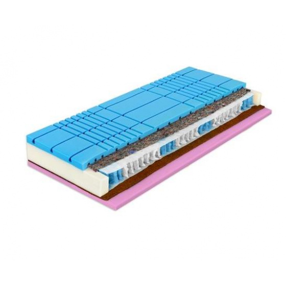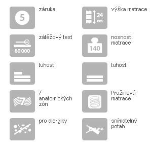 ZÓNOVÉ ORTOPEDICKÉ JÁDRO: 7 anatomických zón, cca 400 samostatně reagujících pružinek z české pružinové oceli podpírá a kopíruje tělo v každé poloze. Robustní pěnový rám pro stabilitu konstrukce a pohodlné vstávání. Objemové hmotnosti pěn 28 - 30 kg/m3 pro vysokou mechanickou i hygienickou životnost a odolnost.