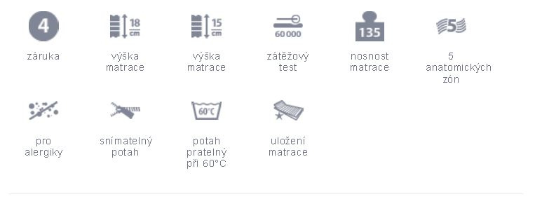 PRUŽNÉ PĚNOVÉ JÁDRO BEZ LEPIDEL - ortopedická 5 - zónová konstrukce bez lepení maximalizuje prodyšnost. Usnadňuje údržbu a prodlužuje hygienickou životnost - jádro snadno provětráte či vysajete. Studené a hybridní pěny 35 kg/m3 s nejdelší možnou mechanickou i hygienickou životností.